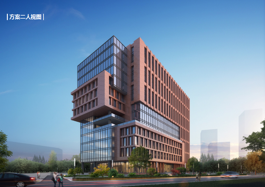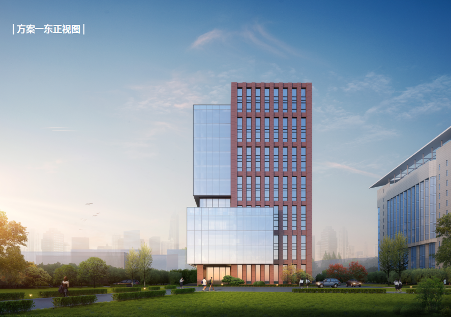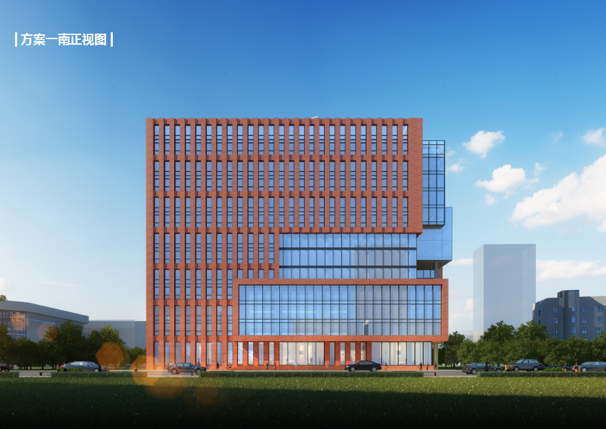 研发大楼包含科技研发企业研发办公与教育部重点实验室两大功能。在此基础上,设计以打造成尊重环境、彰显品质、校企融合的国家级孵化平台为目标,以服务创新创业、促进科技成果转化、优化创业环境、培育企业家精神为宗旨,以秉承产业推动科研,科研助推产业为原则,达到校企融合、共同发展的目的。建筑空间形态上,期望延续校企融合的理念,两大功能体块相互咬合呈一个整体,打造出相互融合又彼此独立的空间形体关系,同时最大化地减少交通面积,增加得房率,提高使用效率。建筑材质上,将学院与企业两大功能在立面材料上进行区分,学院立面延续学校历史色彩元素,采用赭石色陶板做装饰材料来彰显学院庄严沉稳的气质,企业立面则融合新材料理念,采用灰白双色玻璃幕墙来营造现代感和科技感。