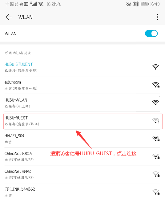 2.连接【HUBU-GUEST】WiFi信号;