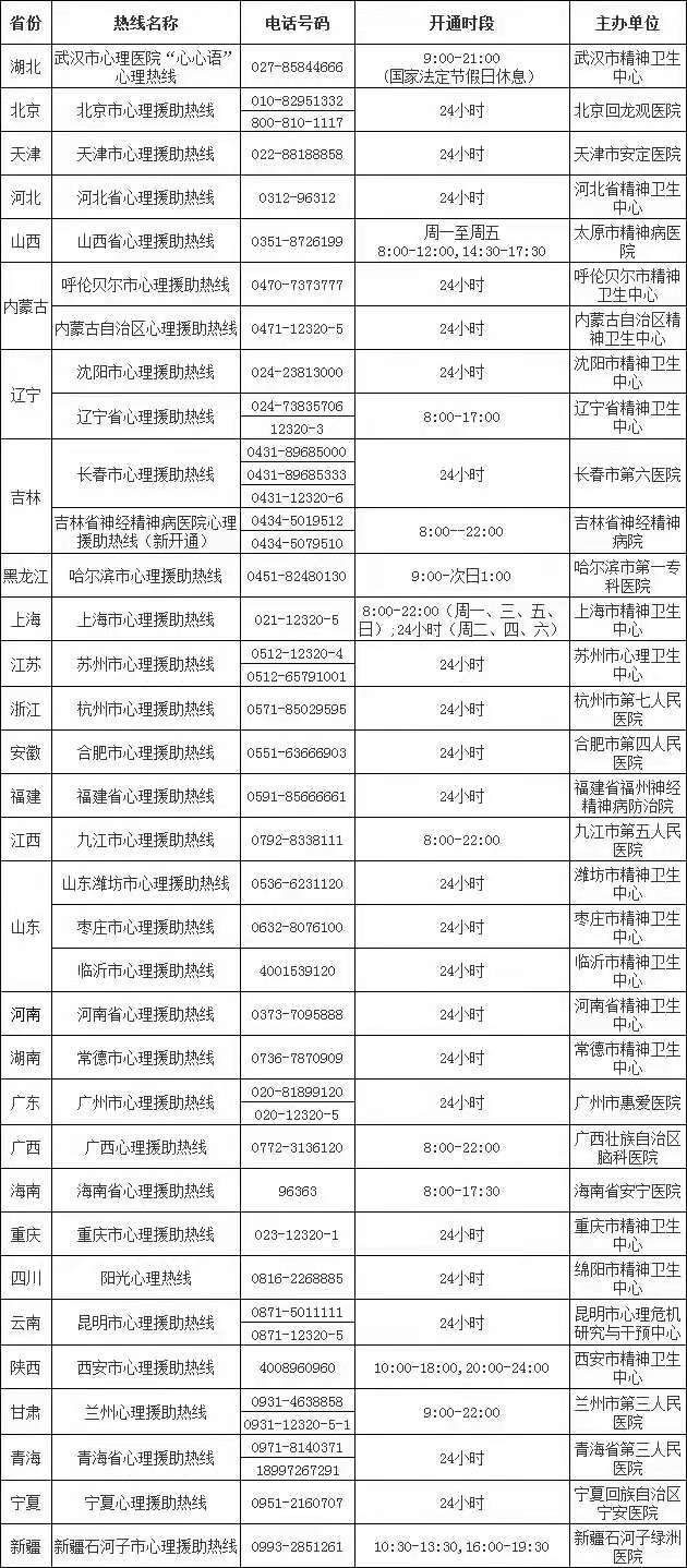鉴于在疫情发展中及控制后对心理干预的大量需求,我们同时提供全国心理援助热线电话,供必赢官网因新型冠状病毒感染的肺炎疫情产生心理压力、急需情绪缓解的学生使用。