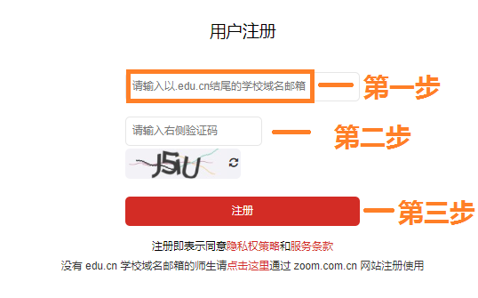 第二步:页面跳转到注册界面,按图所示,建议一定使用以edu.cn结尾的邮箱进行注册以获得更好的体验。