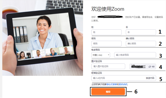第四步:进入资料填写界面,按照1-6顺序填写,注意密码有强度要求,需要输入手机短信验证码进行认证完成账户注册。