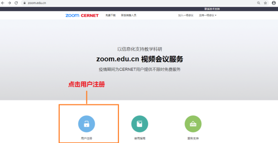 第一步:浏览器访问ZOOM教育网站点zoom.edu.cn,按图所示点击。
