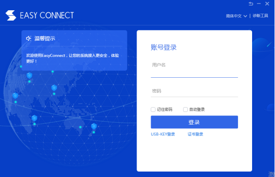 1、任意浏览器地址栏输入VPN访问地址“/index.html”,打开页面。