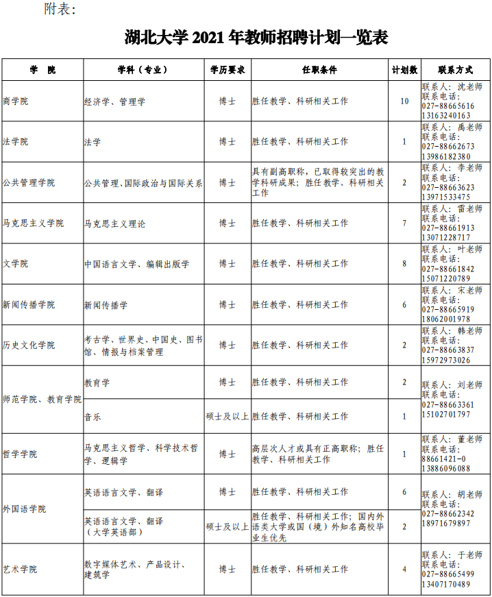 (二)教师招聘:见《必赢中国官方网站2021年教师招聘计划一览表》