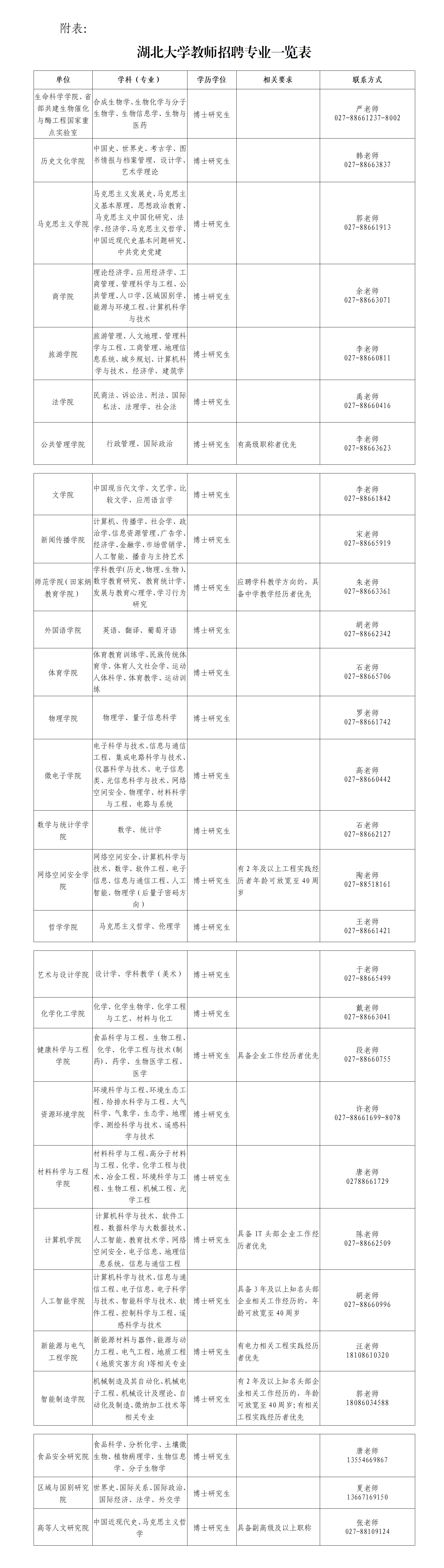 联系人:汪老师(人事处),027-88663285