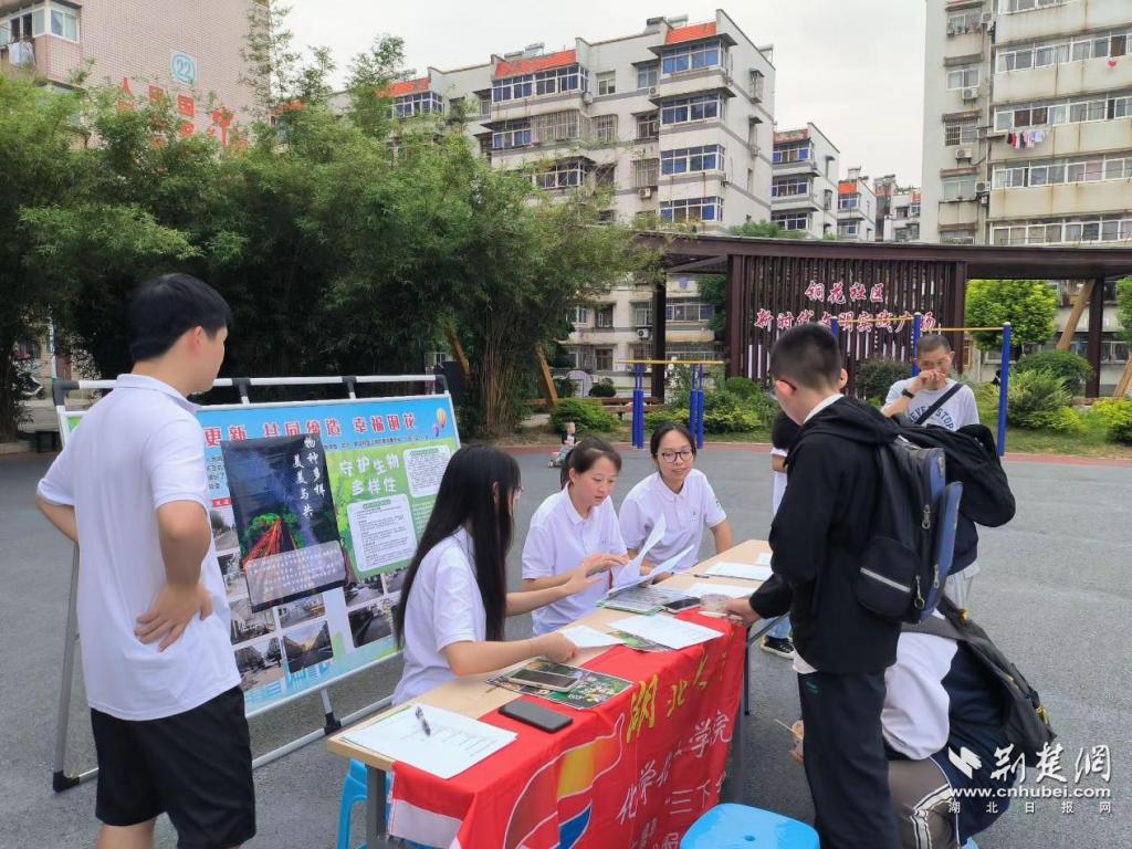 “奇妙生物队”还利用难得的休息日,赴黄石市东风山、磁湖湿地公园等地开展实地考察调研。团队成员通过拍照留存、采集样本等方式,了解记录当地生物分布情况,并通过摆点宣讲、分发传单、填写问卷、个别访谈等途径,向广大居民群众宣传普及生物的多样性及其保护,引导和鼓励居民群众增强环保意识、参与“与绿同行”,共建希望家园和美丽社区。