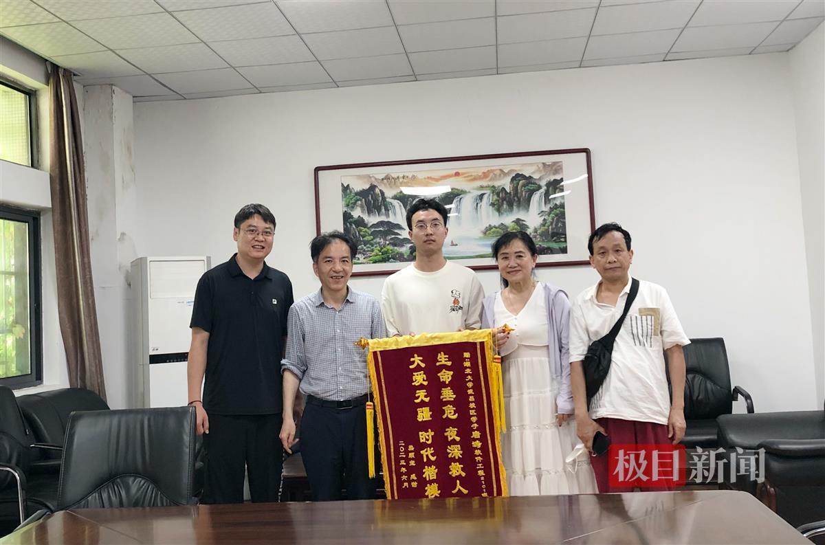 6月9日,刚刚出院的熊先生做了一面写有“生命垂危 夜深救人 大爱无疆 时代楷模”的锦旗,送到了学校。在学院领导和老师们的见证下,唐涛接受了一家人的感谢。
