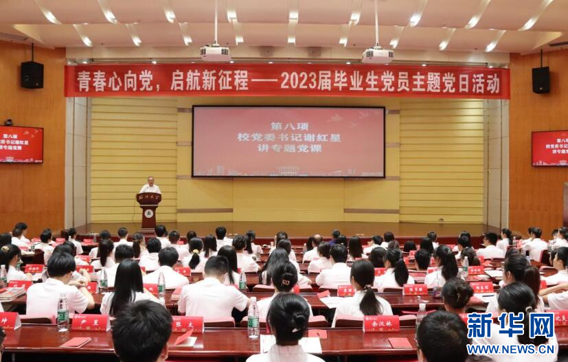 “希望大家永远牢记我们是共产党员,我们是同志!”谢红星代表学校向全体毕业生党员顺利完成学业表示热烈祝贺,并讲授《牢记“三个务必” 走好新的“赶考”之路》的专题党课。他勉励同学们迈出校门、走向社会后,务必不忘初心、牢记使命,把人生理想融入党和人民事业之中,自觉做共产主义远大理想和中国特色社会主义共同理想的坚定信仰者和忠实实践者;务必谦虚谨慎、艰苦奋斗,善于向群众学习、向实践学习,从群众中来,到群众中去,涵养“自找苦吃”的精气神,在实践中锻炼成长,保持接续奋斗、久久为功的奋进姿态;务必敢于斗争、善于斗争,面对“两个大局”,发扬斗争精神、增强斗争本领,坚定不移听党话、跟党走,敢于迎接各种风险挑战。谢红星表示,人生道路非常长,未来考验非常多。希望同学们不断增强党员意识、锤炼党性修养,明大德守公德严私德,时时自省、常常自警,在新的“赶考”路上,心中有信仰、脚下有力量,奋力跑出新时代湖大人“与党同心、跟党奋斗”的最好成绩。