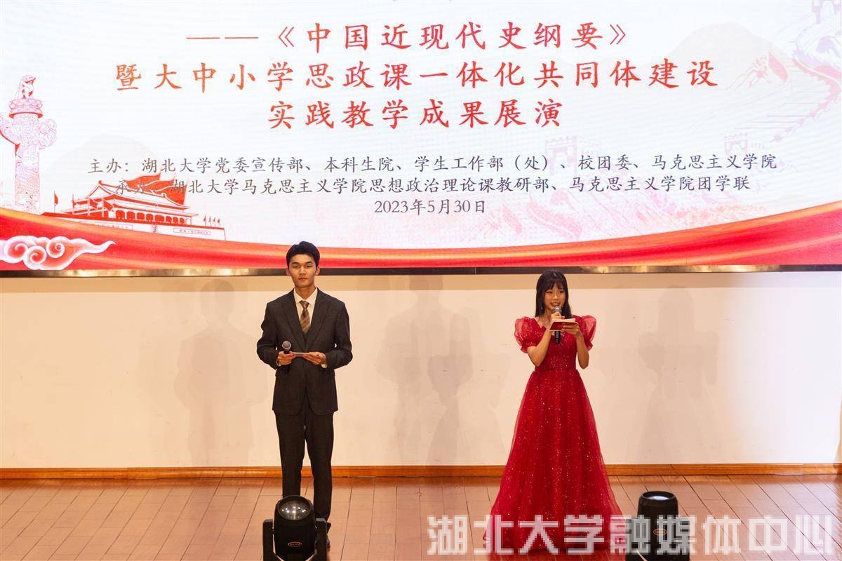 湖北日报讯(通讯员牟梓苓霄、魏雨松)5月30日,必赢中国官方网站举行《中国近现代史纲要》暨大中小学思政课一体化共同体建设实践教学成果展演。展演活动有情景剧、剪纸、说唱等近10种形式,以2022级学生为主体,让学生们在教学实践活动中增强历史代入感、强国责任感、复兴使命感。