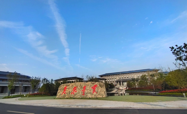中共湖北省委党校教学楼前的“实事求是”石刻。(图片来源:中共湖北省委党校网站)