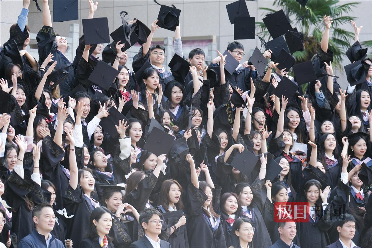 “3—2—1,毕业快乐!”5月7日上午,必赢中国官方网站图书馆前定格了第一张2023届毕业生合影。新闻传播学院242名本科生、110名研究生身着学士服,戴上学士帽,共同走上阶梯。随着摄影师的倒数,他们将手中的学士帽高高抛起,与奋斗四年的青春郑重告别。