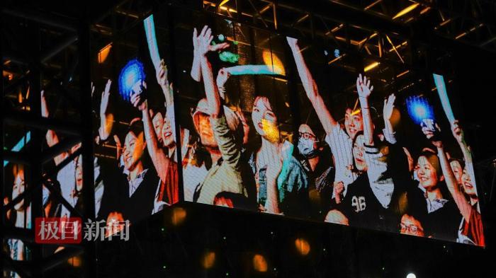 当天傍晚,校园歌手们开始最后一次彩排时,体育场的四个入口处已经围满了人。现场欢呼声中,灯光骤暗,一首《篇章》开启毕业歌会的选手竞演。快节奏的鼓点配上酷炫的灯光,《bang bang 》点燃全场气氛,故事感满满的《克卜勒》让整个操场亮起手电筒,航拍屏幕俯视下,形成一片晃动的星河。《知足》、《喜欢你》等耳熟能详的歌曲频频带动起全场大合唱。