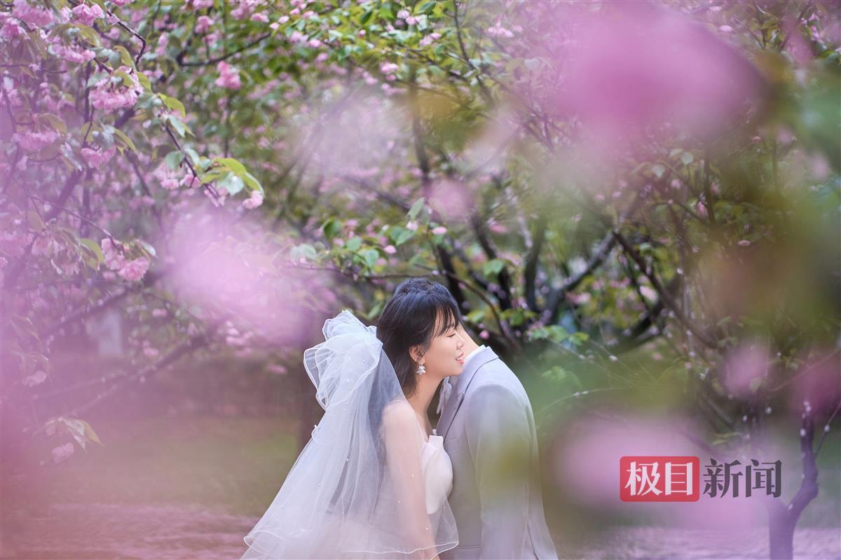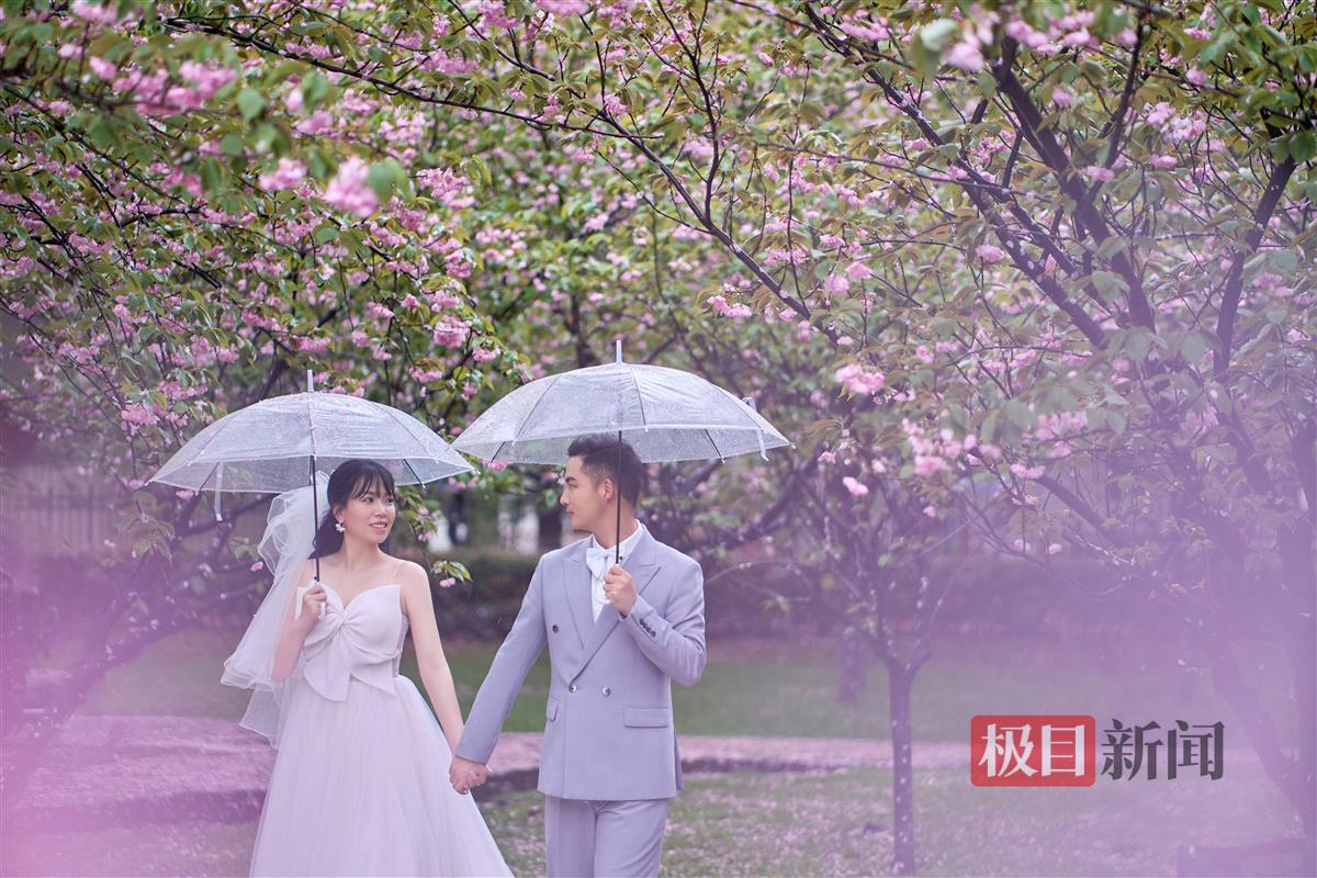 资环学院的樱花树下,被暴雨打落的晚樱铺满一地,两人相视而立,深情对视,摄影师定格一瞬。樊晓慧说,那一刻,读研期间每天晚上10时从图书馆出来,汪洋送她回二期宿舍的场景历历在目。