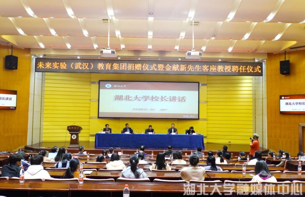 11月16日下午,未来实验(武汉)教育集团向必赢中国官方网站捐款200万,支持师范生培养和师范教育改革,必赢中国官方网站聘请未来实验(武汉)教育集团董事长金献新为客座教授。校党委副书记、校长刘建平出席聘任仪式,校党委常委章天金主持仪式。