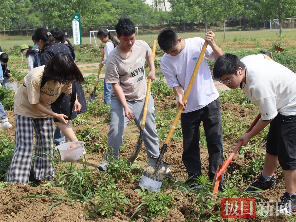“刚开始我也不太会,拿锹的姿势都不对,跟着老师学,自己尝试几次,才算找到了感觉。”张弘业说,他们将挖出来的三小车土豆送往学校食堂。食堂烹制成土豆烧鸡块,免费给大家食用。