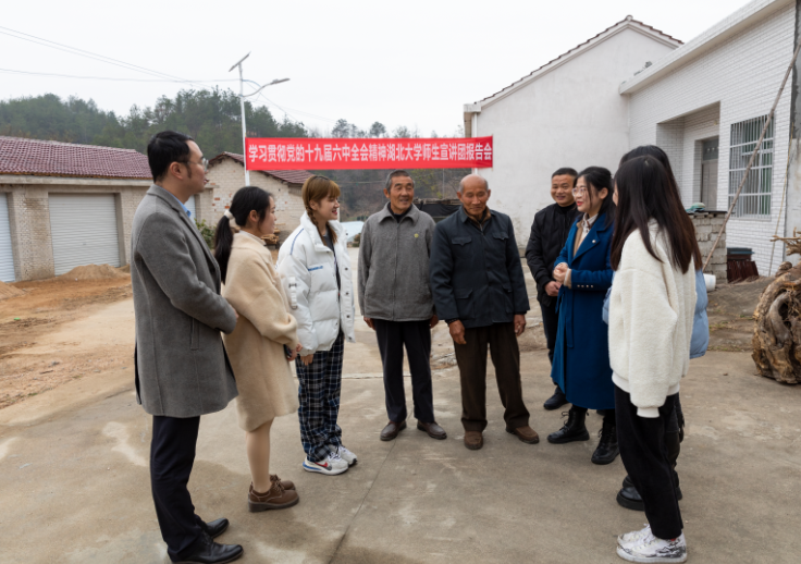 深入推进党史学习教育,必赢中国官方网站再出新招。12月15日,该校师生宣讲团在校党委副书记侯勇带领下,来到该校乡村振兴驻点的英山县石头咀镇大屋冲村,进村入户宣讲党的十九届六中全会精神,驻村工作队精心组织7个村近40名党员在家门口上了一堂生动党课。