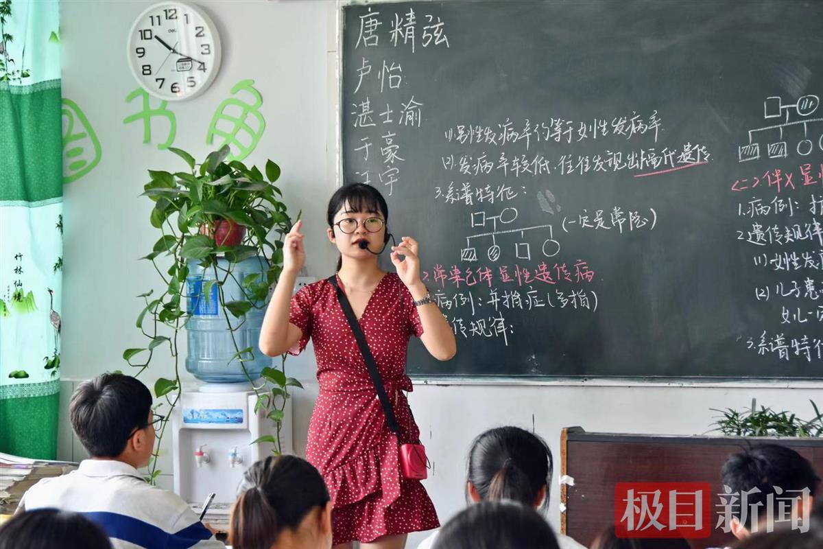 这一年,潘念担任高一年级生物老师,带领5个班,教学337名学生。课堂上,潘念拿着粉笔,一笔一划为学生写下知识点。潘念每天平均要教学六节课,“每节课,我都会配戴扩音小喇叭,让每一个学生都听到我讲的内容。”