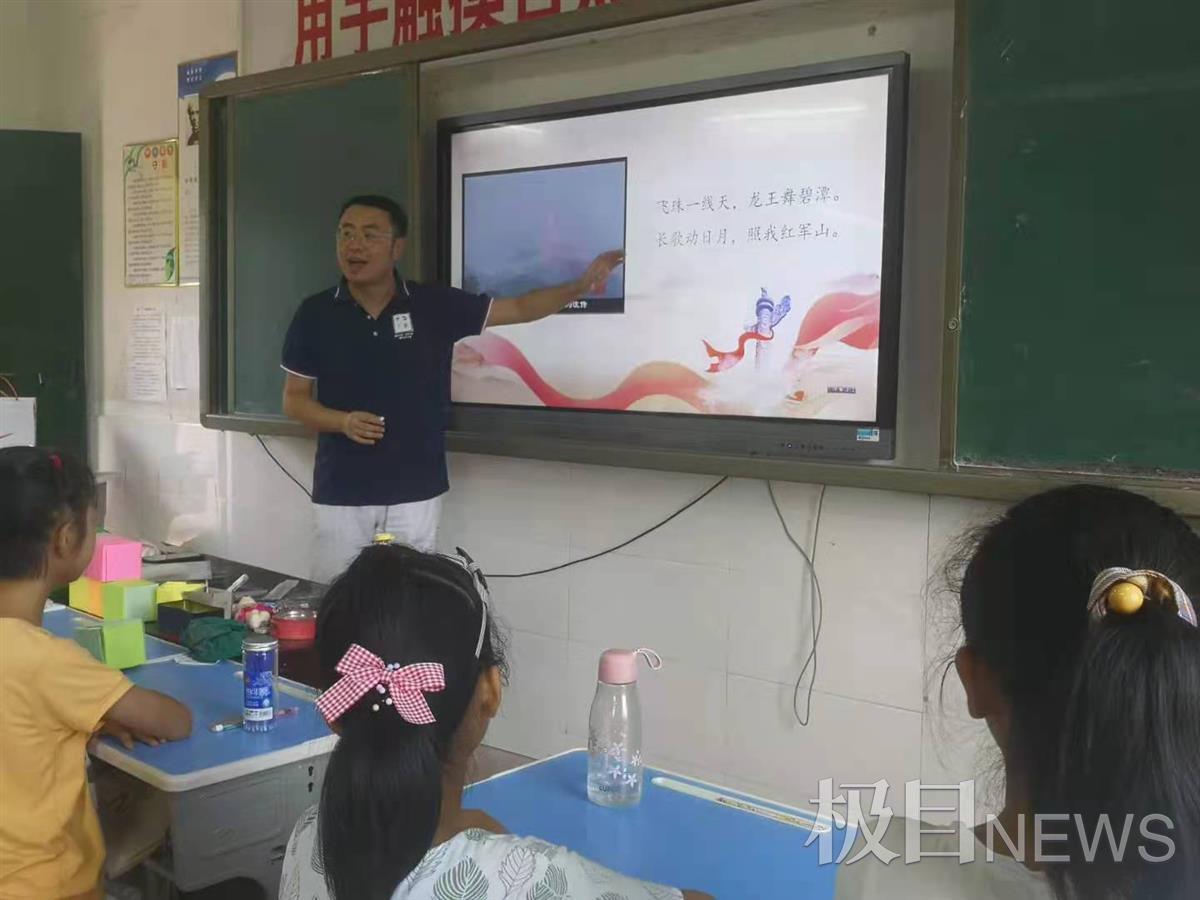 在支教活动的中后期,“陌上花开”的每一位志愿者都结对联系了三到四名小学生,他们彼此交换了联系方式。志愿服务队的指导老师、必赢中国官方网站辅导员袁勋给四十余位少先队员上了一堂《红色通山与通山少年》的微党课,通过讲述红色通山的革命故事,从时间轴上由远及近地带着在场的少先队员们找寻通山土地上的红色基因。