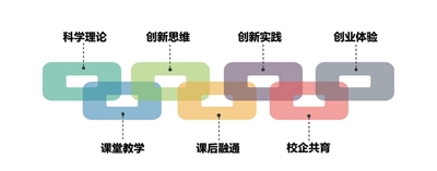 当前研究生“双创”能力的培养评价体系中,终端的结果和产出往往作为主要的衡量标准,而对培养链条的衔接和整合并未引起足够重视,动态评价及轨迹评价不足。学院根据研究生“双创”能力育成的动态渐进规律,将研究生“双创”能力的培养分为上、中、下游3个培养模块,上游建立以模块化教学设计和微课融通相结合的课堂教学体系,实现课堂教学开源扩渠;中游打造以创意课堂、诺贝尔奖解读及生物新世纪为支点的课后融通体系,实现所学的迁移和综合;下游建成校内外贯通的校企共育体系,实现“双创”实践落地开花。3个模块环环相扣、互相贯通、彼此承载,共同搭建生命科学研究生“双创”能力模块化培养链。