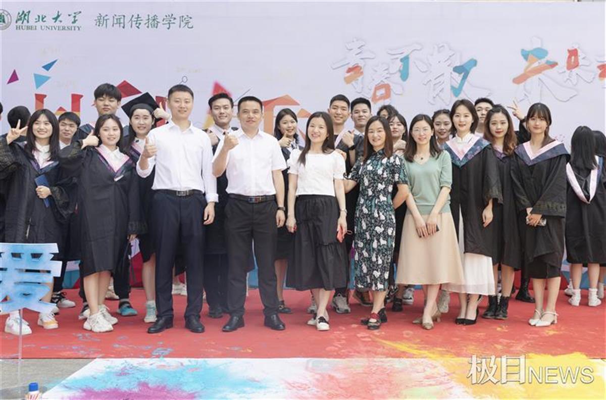 “毕业快乐!”“冲,新传人!”……活动中,学院不同专业的老师们也惊艳亮相,他们手持应援牌为毕业生们“打call”,同时与学生一起踏上“彩虹启航路”,并在签名墙上写下自己的姓名与祝福。“很荣幸能陪你们走过这一段,见证你们的成长与青春年少,老师只愿再相遇时,你们仍是少年!”当天,传播学专业吴宁老师还在QQ空间上深情发文,寄语毕业生们未来继续乘风破浪、无畏前行。