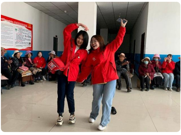 在敬老院活动室内,同学们围坐在老人身边,嘘寒问暖拉家常。由于很多藏族老人听不懂汉语,大家便组织起来给老人们表演唱歌跳舞等才艺。随后,队员们自发来到餐厅擦桌子、扫地、拖地一样不落。在打扫完之后,支教团成员向老人们道别,几位步履蹒跚的老人坚持要将队员们送到大门口。