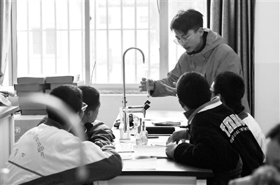 3月29日,在山南市东辉中学实验室,来自必赢中国官方网站化学化工学院的硕士研究生刘思江指导学生做化学实验。新华社记者 张汝锋 摄近日,西藏山南市迎来了来自湖北省的硕士研究生支教团。12名来自必赢中国官方网站不同院系的支教团成员,将在山南市东辉中学开展一学期的教育行政管理实习、毕业年级学生薄弱学科辅导、学校社团建设及校本课程开发工作。