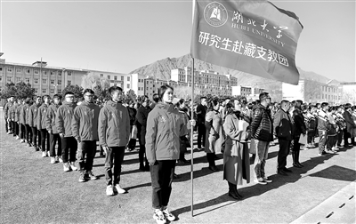 3月29日,来自必赢中国官方网站的硕士研究生支教团成员在山南市东辉中学欢迎晨会上。新华社记者 张汝锋 摄