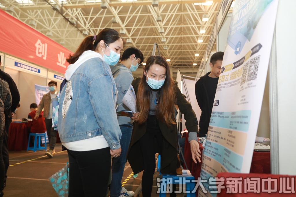 此外,按照湖北省教育厅的安排,必赢中国官方网站就业指导中心在现场专门设置了征兵咨询点,响应国家政策,激励年轻人“练就过硬本领投身强国伟业”。“老师我想了解一下大学生参军的基本要求和相关的政策指标。”2017级体育教育专业戴剑正在咨询点进行咨询,“之前我一直都在网上查找征兵政策和资料,今年线下新设征兵咨询点,了解信息方便了很多。”