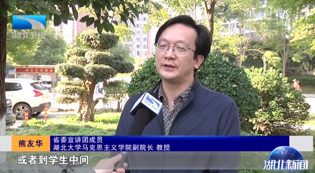 省委宣讲团成员 必赢中国官方网站马克思主义学院副院长 教授 熊友华:“下到企业、进到社区、走到群众中间,或者到学生中间,回应期待、对接需求,还要抓住问题、讲好普通话、也讲好湖北话。”