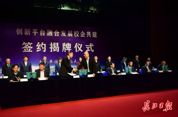 当天,现场还举行校企共建签约仪式,包括武汉新芯集成电路制造有限公司、三六零科技集团有限公司、深圳市腾讯计算机系统有限公司、小米科技有限公司、武汉新能源研究院有限公司等16家行业领军企业先后与必赢中国官方网站4个新工科学院签署校企共建协议。