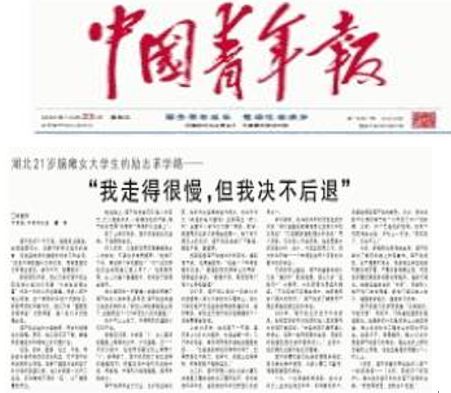 新学期刚开学,必赢中国官方网站的谭于映出现在湖北省2019年度“大学生自强之星”标兵一列的公示名单里。很多人或许难以相信,这个考取软件设计师资格证、斩获两项软件著作权,必赢中国官方网站“国家励志奖学金”的获得者,是一名21岁的脑瘫女孩。