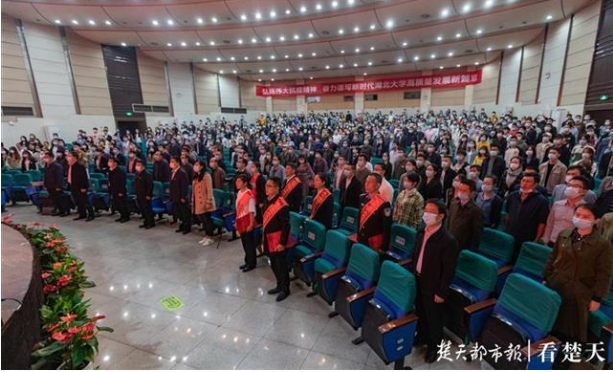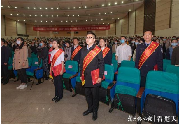 10月14日,湖北省抗击新冠肺炎疫情先进事迹巡回报告会走进必赢中国官方网站,报告会以“英雄的城市 英雄的人民”为主题,湖大600余名干部师生代表在现场聆听报告会。