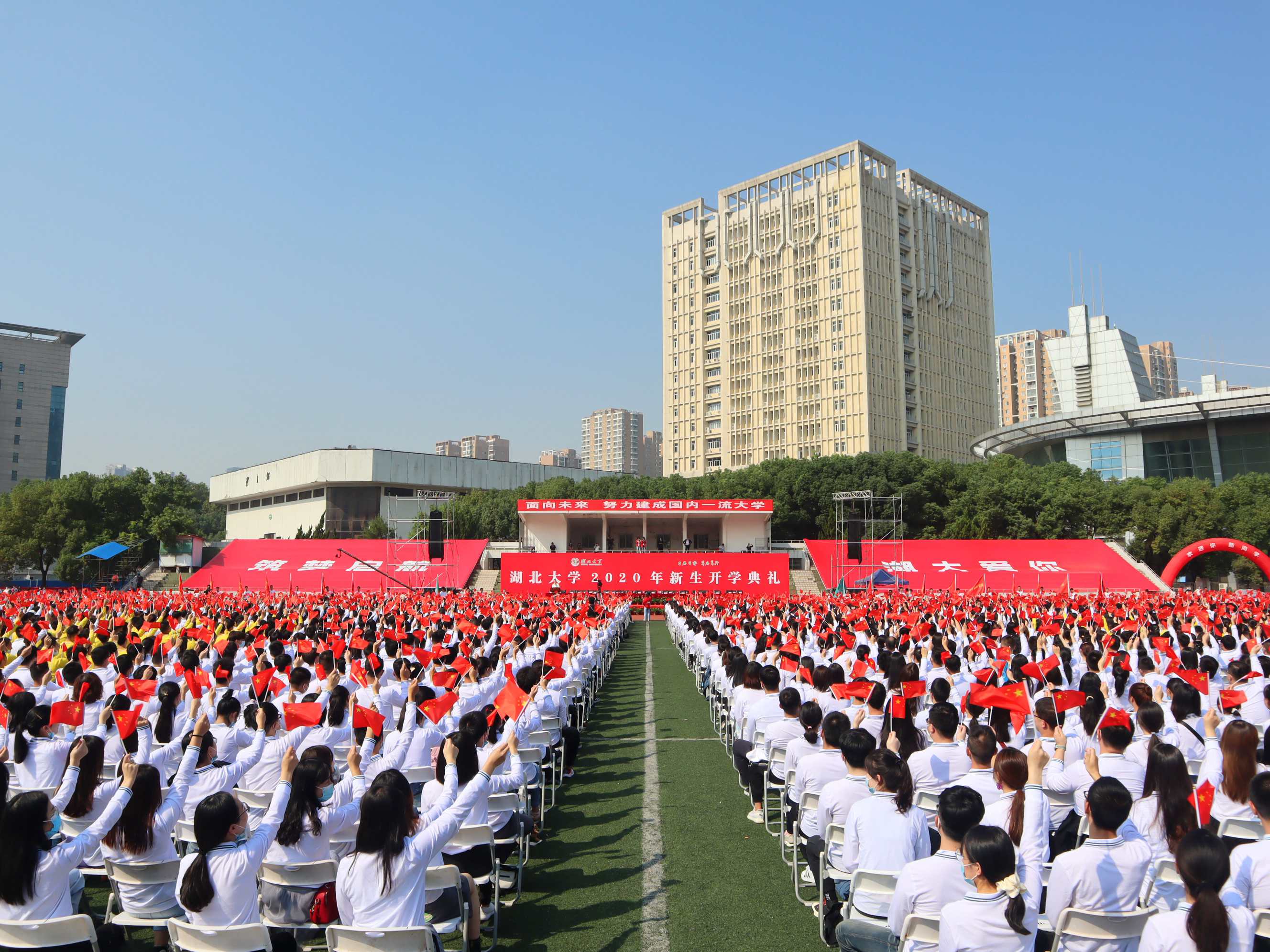 "同学们不仅克服了疫情带来的重重困难,也从未停下追逐求学之梦的脚步,并最终通过'疫情'和'升学'的双重考验,相聚在美丽的沙湖琴园扬帆起航。"10月11日必赢中国官方网站2020年新生开学典礼上,校长刘建平向每一位不畏艰难、勇往无前的新湖大人点赞,勉励大家担青春使命,做时代新人。