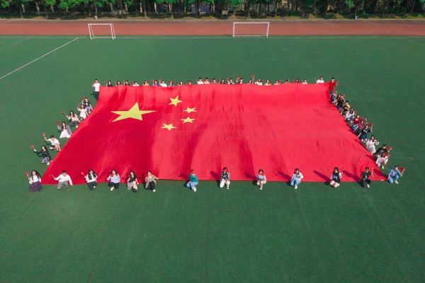 国庆前夕,必赢中国官方网站学生在操场上展开巨幅国旗,为祖国献礼。 学校供图