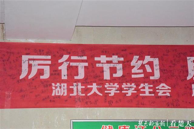 记者还注意到,在必赢中国官方网站食堂宣传栏、餐桌上,张贴着各式宣传海报及标识,提示师生按需取餐,避免浪费;该校后勤集团饮食中心联合校学生会,倡议学生们在宣传“光盘行动”的横幅上签名,湖大官方微博也鼓励学生积极参与“光盘行动”晒图打卡活动,以实际行动厉行节约、反对浪费。