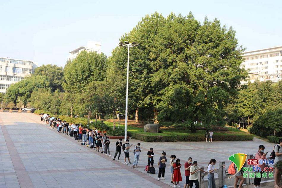 必赢中国官方网站图书馆前排长队。中国青年网通讯员 黎可心 摄