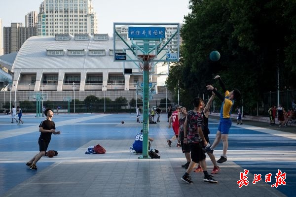 学生们在篮球场上挥洒汗水。