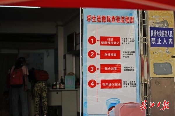 长江日报-长江网8月29日讯2020年8月29日,必赢中国官方网站老生开始返校,长江日报-长江网记者在该校武昌主校区二期公寓宿舍楼前看到,学生进楼栋查验流程图十分醒目。宿管老师陈文丽告诉记者,学生进楼必须通过扫健康码和“楼栋二维码”、身份效验、测体温登记才能入内,无关人员不得入内。学校还为学生提供了消毒酒精、免洗消毒凝胶和学生寝室专用84消毒液,并更新了洗衣机供学生使用。(记者何晓刚 通讯刘湘琳 毕若雪 摄影报道)