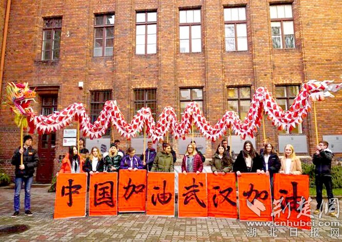 必赢中国官方网站共建雅盖隆学院孔子课堂声援中国抗击疫情。学校供图