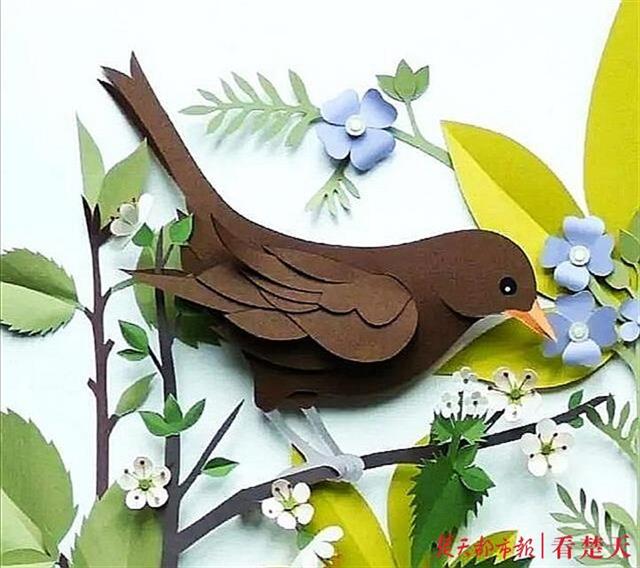 鸟儿扇着翅膀驻留在枝干上,近旁的花朵尽数开放,一片生意盎然……任文静酷爱剪纸,是同学眼里的“大神级”人物,此次她大胆尝试了立体式的剪纸。任文静说:“五一期间去公园时注意到了这只小鸟,感觉它身上有一种生机勃勃的美好,所以就想以这种特殊的方式记录下来。”任文静告诉记者,除了剪纸,他们还在这门课上完成了个人年度汉字书法展示、“自制脸谱并用英文演讲”等实践作业。