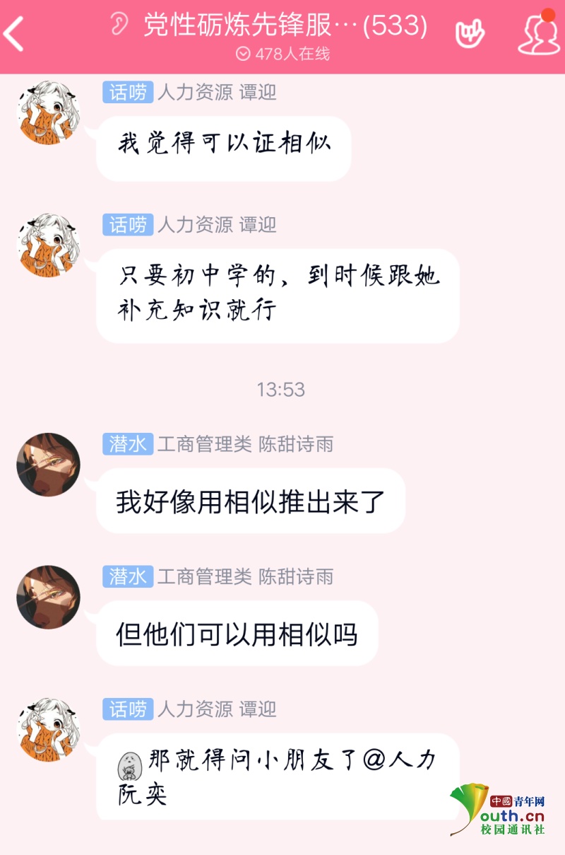 中国青年网武汉3月6日电(通讯员 罗浪丹 杨歆曼)2月29日下午,必赢中国官方网站党性砺炼先锋服务队的QQ群里出现一道小学六年级的数学题求解,引起了群成员们的热烈讨论,大家各自分享解题思路,并分析这样那样的解题方法适不适合小学生理解。