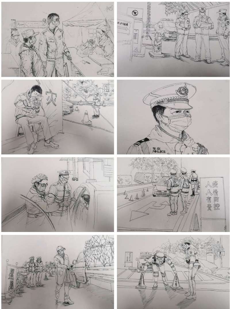懂事的李茜雅很理解父亲。她说,父亲当警察已经二十多年,入警誓词已经深深刻进父亲的骨子里,为工作不着家已是常态,自己在家里没有别的什么可以为父亲做的,就用此次父亲和同事们的工作照为参照,为他们画一些素描图,记录爸爸还有一线所有防疫工作人员的辛苦付出,为他们加油鼓劲。