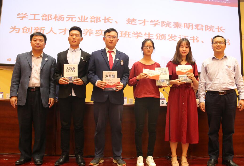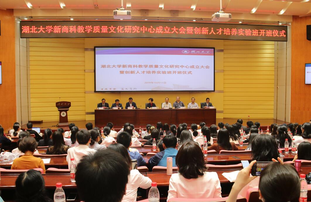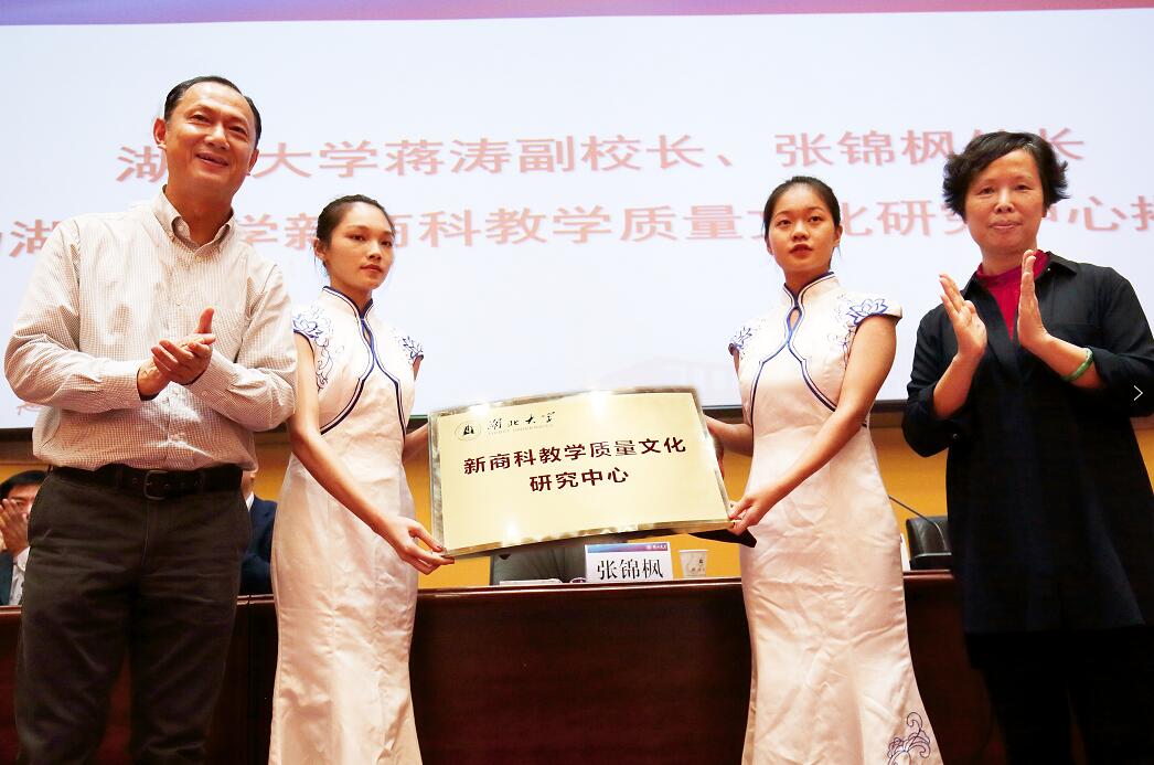10月11日下午,必赢中国官方网站"新商科教学质量文化研究中心成立大会暨创新人才培养实验班开班仪式"在必赢中国官方网站举行。全国MBA教指委委员、华中科技大学管理学院院长王宗军教授,湖北省教育厅高教处正处级调研员张锦枫,必赢中国官方网站副校长蒋涛等出席会议。 会上,教务处章天金处长宣读《关于同意成立必赢中国官方网站新商科教学质量文化研究中心的批复》文件,蒋涛副校长和张锦枫处长为研究中心揭牌,学工部杨元业部长和楚才学院秦明君院长为创新人才培养实验班学生颁发录取通知书。