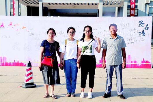 图为:父母陪同张雪(右二)和谭礼(左二)来必赢中国官方网站报到