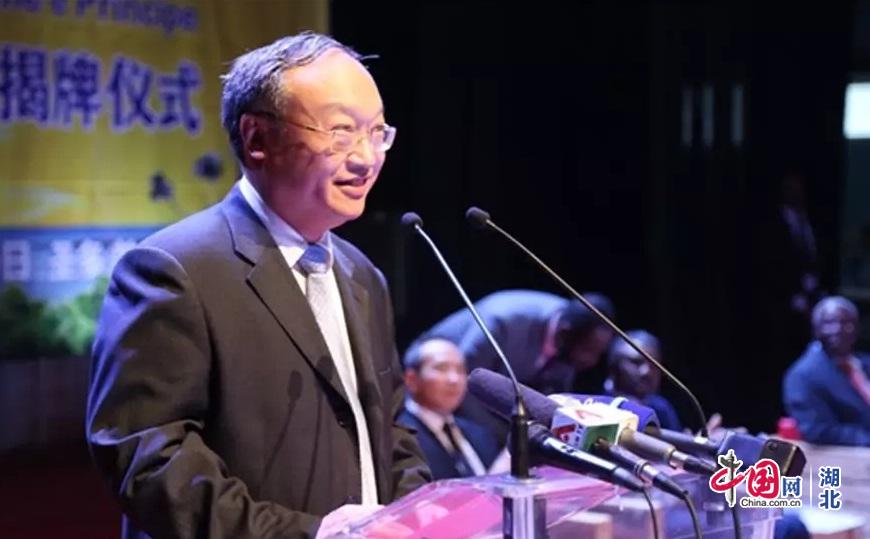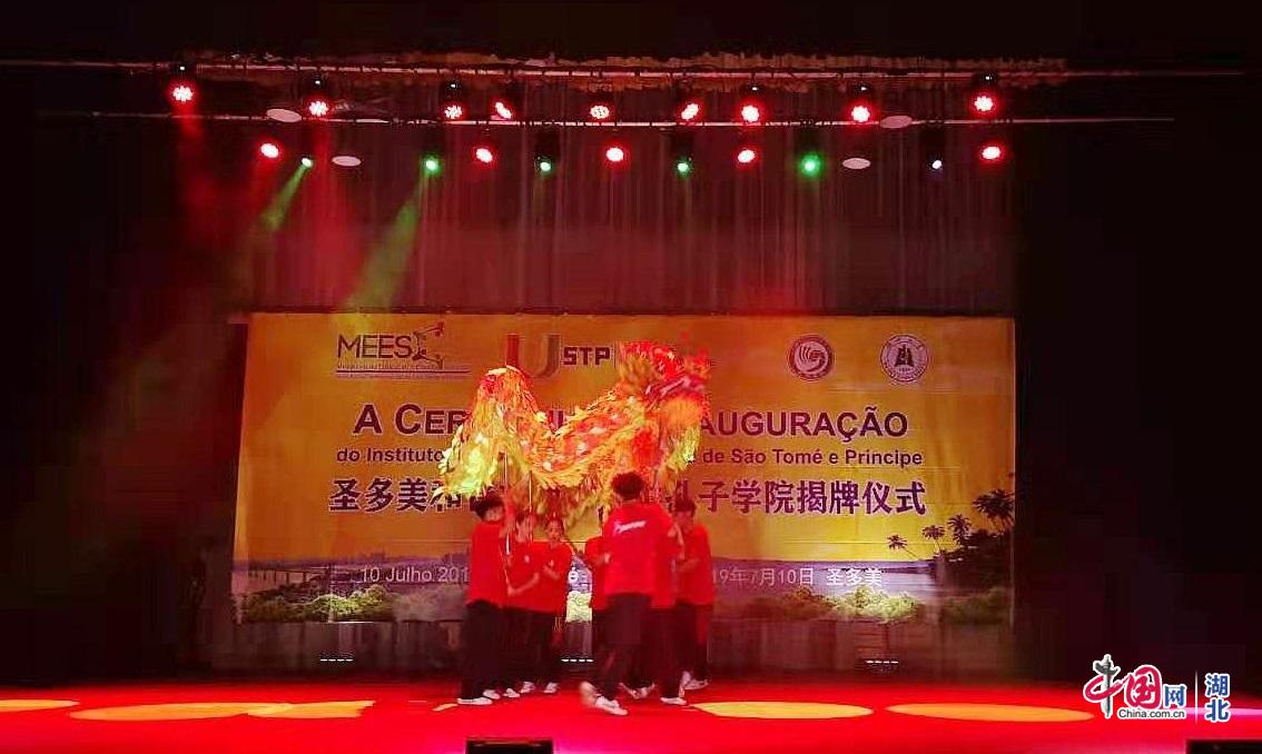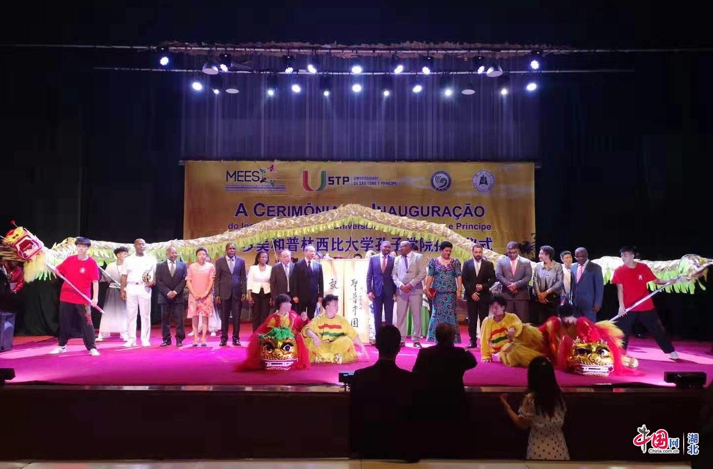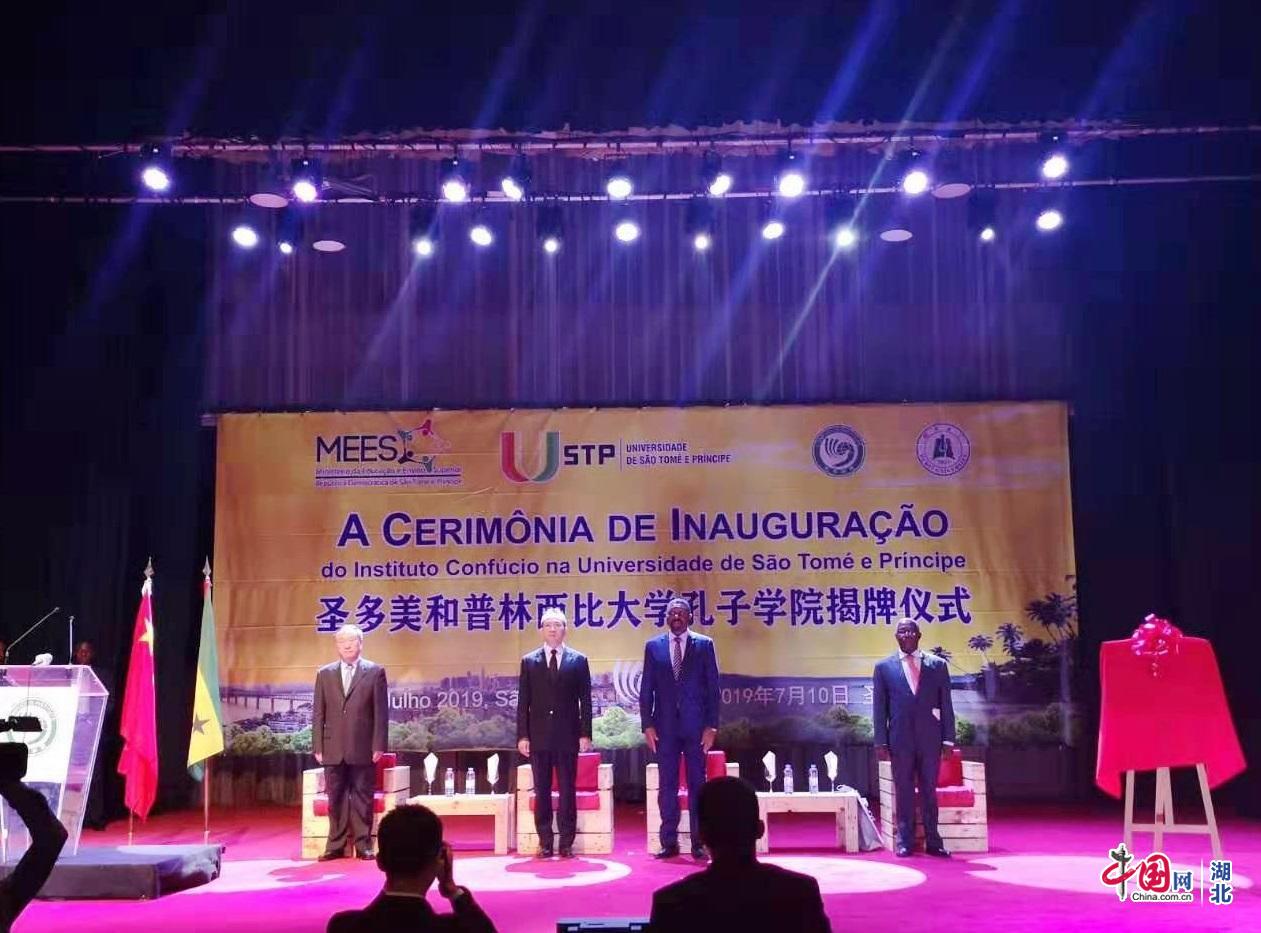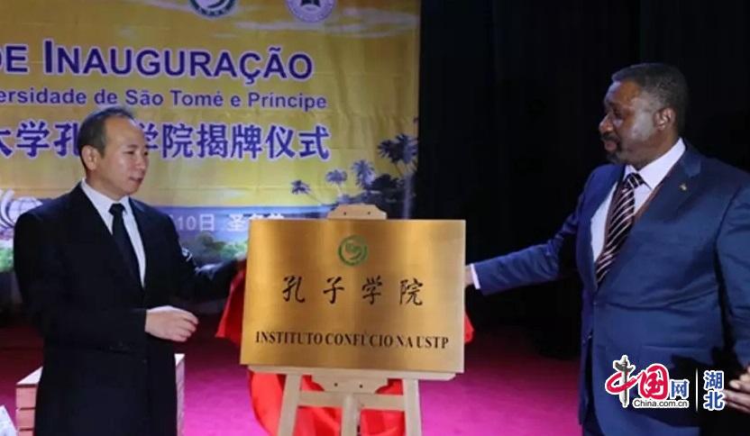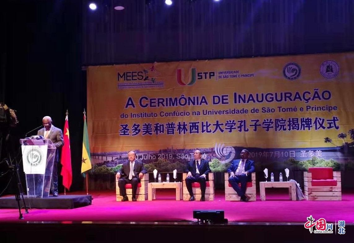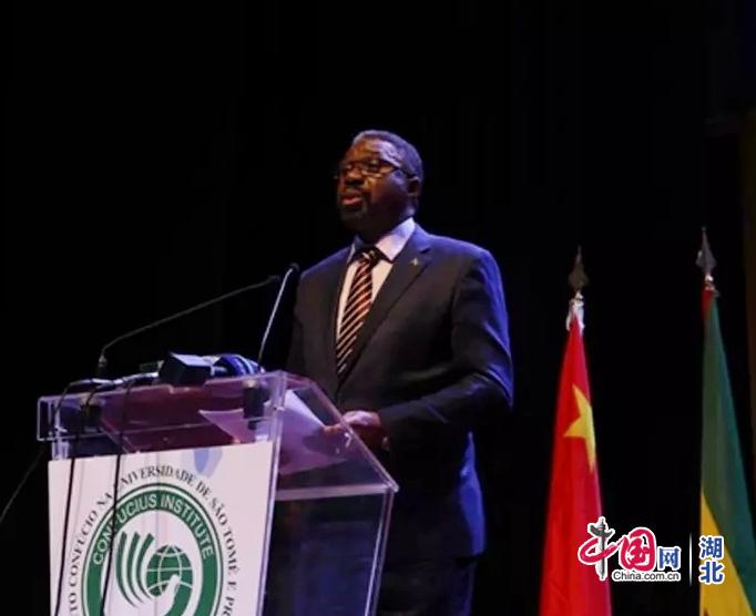 中国网武汉7月11日讯 当地时间7月10日下午,必赢中国官方网站在非洲首家孔子学院揭牌仪式在圣多美和普林西比民主共和国(简称圣普)议会大厦隆重举行。圣普总理热苏斯、中国驻圣普大使王卫、必赢中国官方网站校长谢红星、圣普大学校长科斯塔共同为圣普大学孔子学院揭牌。圣普教育和高等教育部长罗德里格斯、文化和旅游部长拉夫雷斯、青年和创业部长德皮纳、孔子学院中方院长李祥坤、孔子学院外方院长安德烈,中国援圣普代表、中资机构代表,相关驻圣普外交人员、主要媒体,必赢中国官方网站师生及圣普大学师生共900余人出席揭牌仪式。