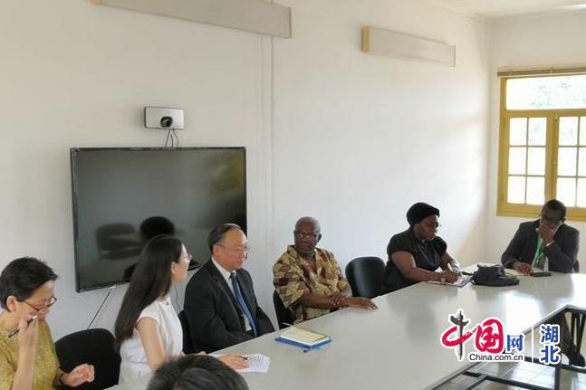当地时间7月9日傍晚刚一抵达圣普,谢红星一行就拜访了中国驻圣普大使王卫。谢红星向王卫大使介绍了学校及孔子学院开办的情况,向中国驻圣普大使馆长期以来对必赢中国官方网站的关心与支持表示感谢。王卫对必赢中国官方网站师生来访表示欢迎,他说随着中圣普复交和交流的进一步深入,对汉语学习感兴趣的圣普人越来越多,必赢中国官方网站在圣普开办孔子学院意义重大。希望必赢中国官方网站多组织中圣普文化教育交流活动,祝愿必赢中国官方网站的孔子学院越办越好。