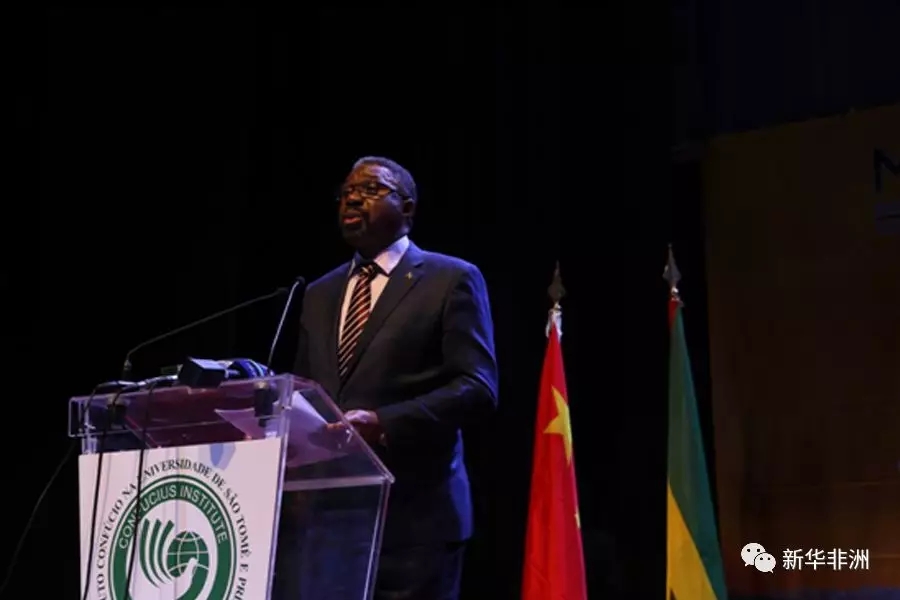 圣多美和普林西比(圣普)大学孔子学院10日举行揭牌仪式。中国驻圣普大使王卫、圣普总理热苏斯以及两国各界人士参加仪式。王卫与热苏斯为圣普大学孔子学院揭牌。