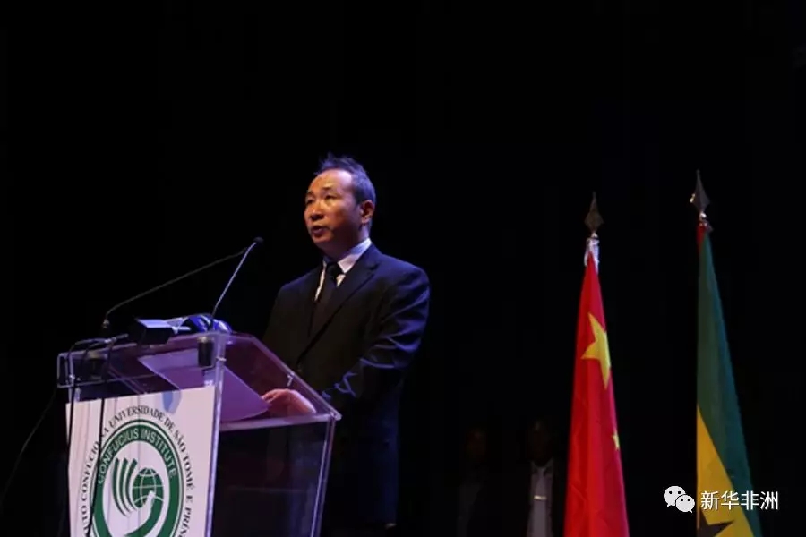中国驻圣普大使王卫讲话。