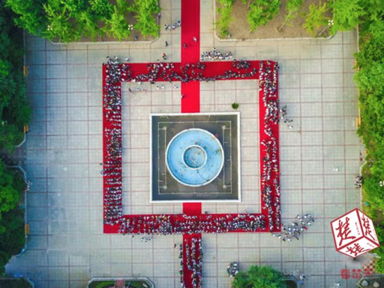 6月15日是武汉生物工程学院举行毕业典礼的日子。当日清晨,该校管理学院千余名毕业生相聚在教学楼前的学府广场,携手走过摆成“中”字形的红地毯,随后步入毕业典礼会场,学弟学妹们在红毯两侧夹道送别学长学姐。
