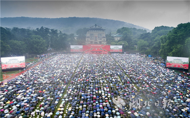 6月21日上午,华中科技大学本科生毕业典礼在光谷体育馆举行,校长丁烈云十多分钟的“叮咛”话语,引起在场7000毕业生共鸣。
